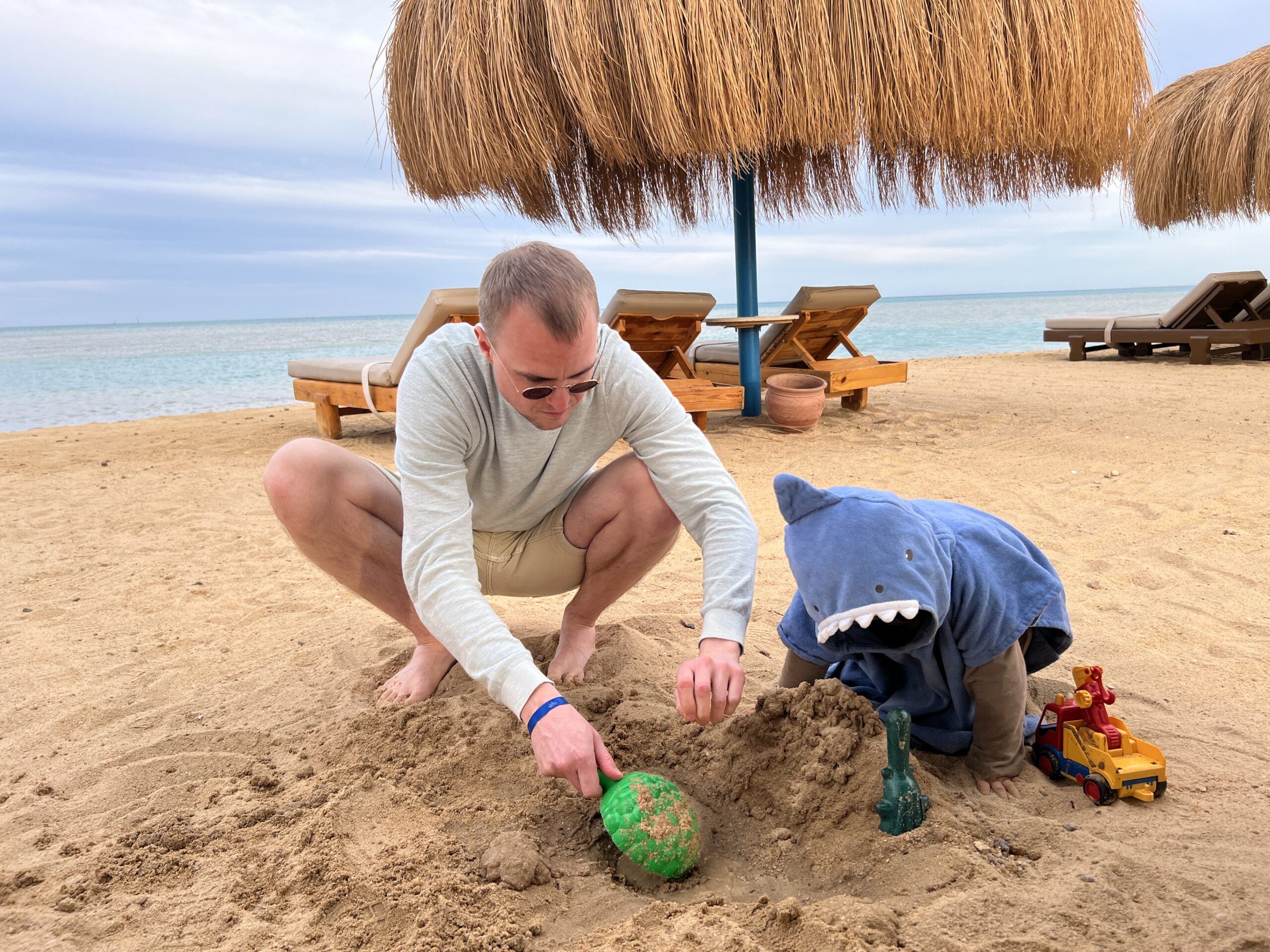 Zurück an Land gab es dann wieder das obligatorische Mittagessen. Danach haben wir uns dann noch an einer eher ruhigen und wenig besuchten Ecke am Strand niedergelassen und endlich etwas im Sand gebuddelt. Genau Juniors Ding.
